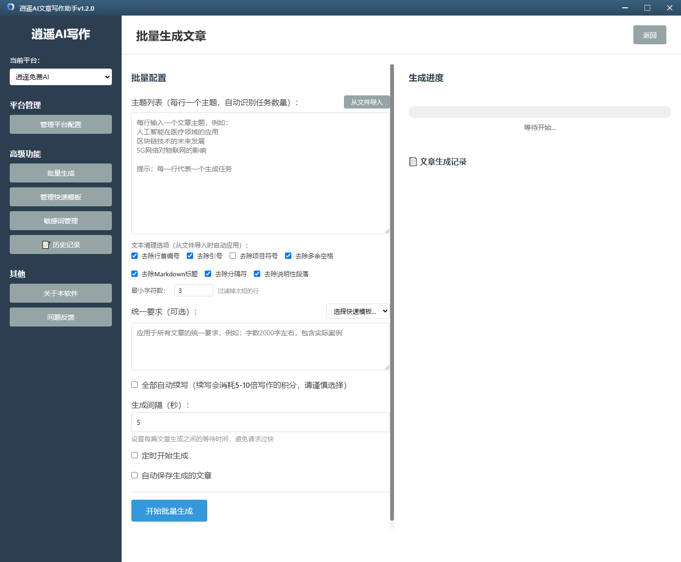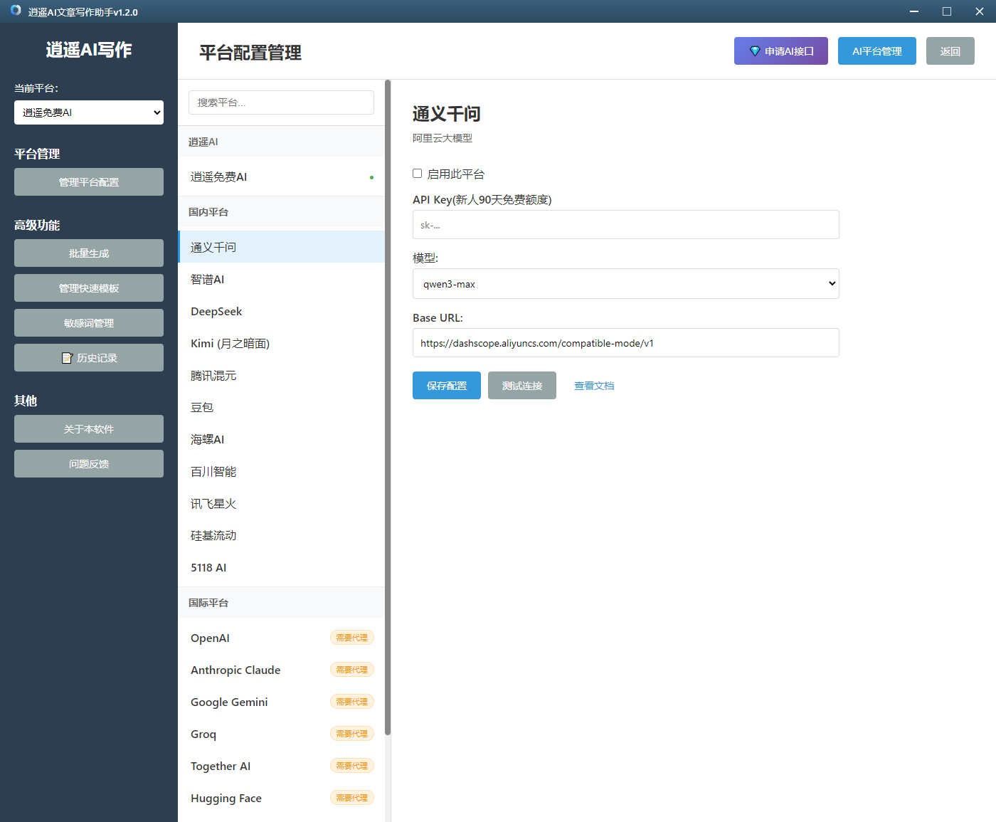 逍遥AI文章写作助手是一款通过AI助力文字写作的助手软件,支持接入15+个AI平台进行智能写作